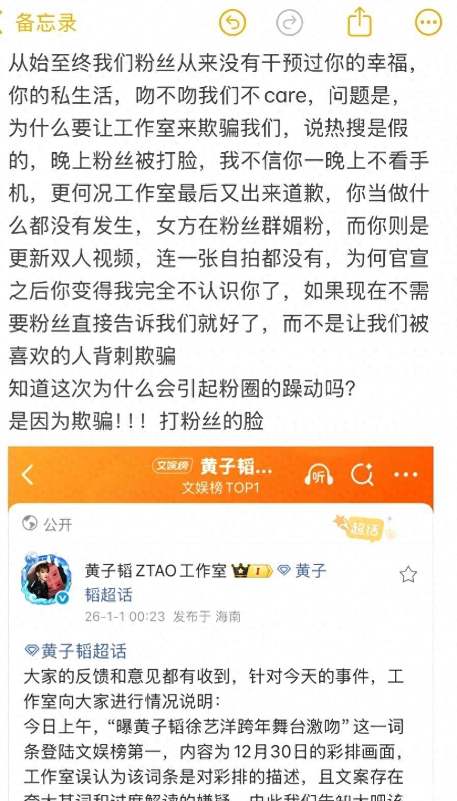 跨年舞台的“激吻瞬间”持续发酵,黄子韬工作室深夜紧急灭火却引发更大波澜。1月1日凌晨,工作室承认此前澄清存在严重误判——将真实演出误称为“彩排情况”,导致官方声明与现场视频完全矛盾。